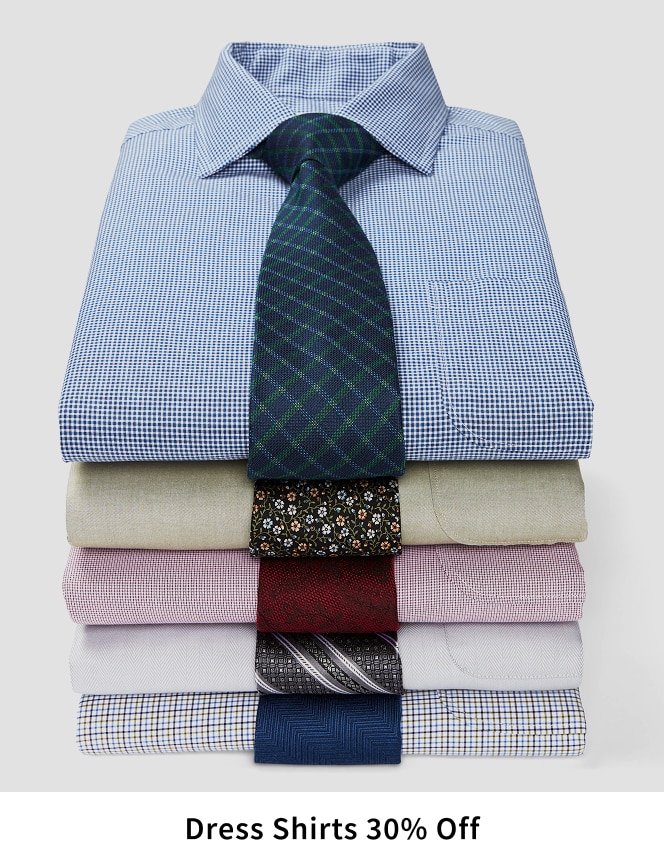 DRESS SHIRTS 30% OFF: Discount taken off regular price. Additional charge for Big & Tall sizes. Select styles, sizes and colors. Excludes 1905, &Collar and custom. Ends 2/4/2026 11:59 p.m. CT. SPORTCOATS AND BLAZERS 30% OFF: Discount taken off regular price. Additional charge for Big & Tall sizes. Select styles, sizes and colors. Excludes Johnston & Murphy Collection. Ends 2/4/2026 11:59 p.m. CT. DRESS PANTS 30% OFF: Discount taken off regular price. Additional charge for Big & Tall sizes. Select styles, sizes and colors. Excludes Johnston & Murphy Collection. Ends 2/4/2026 11:59 p.m. CT. CASUAL SHIRTS 30% OFF: Discount taken off regular price. Additional charge for Big & Tall sizes. Select styles, sizes and colors. Excludes Johnston & Murphy. Ends 2/4/2026 11:59 p.m. CT.