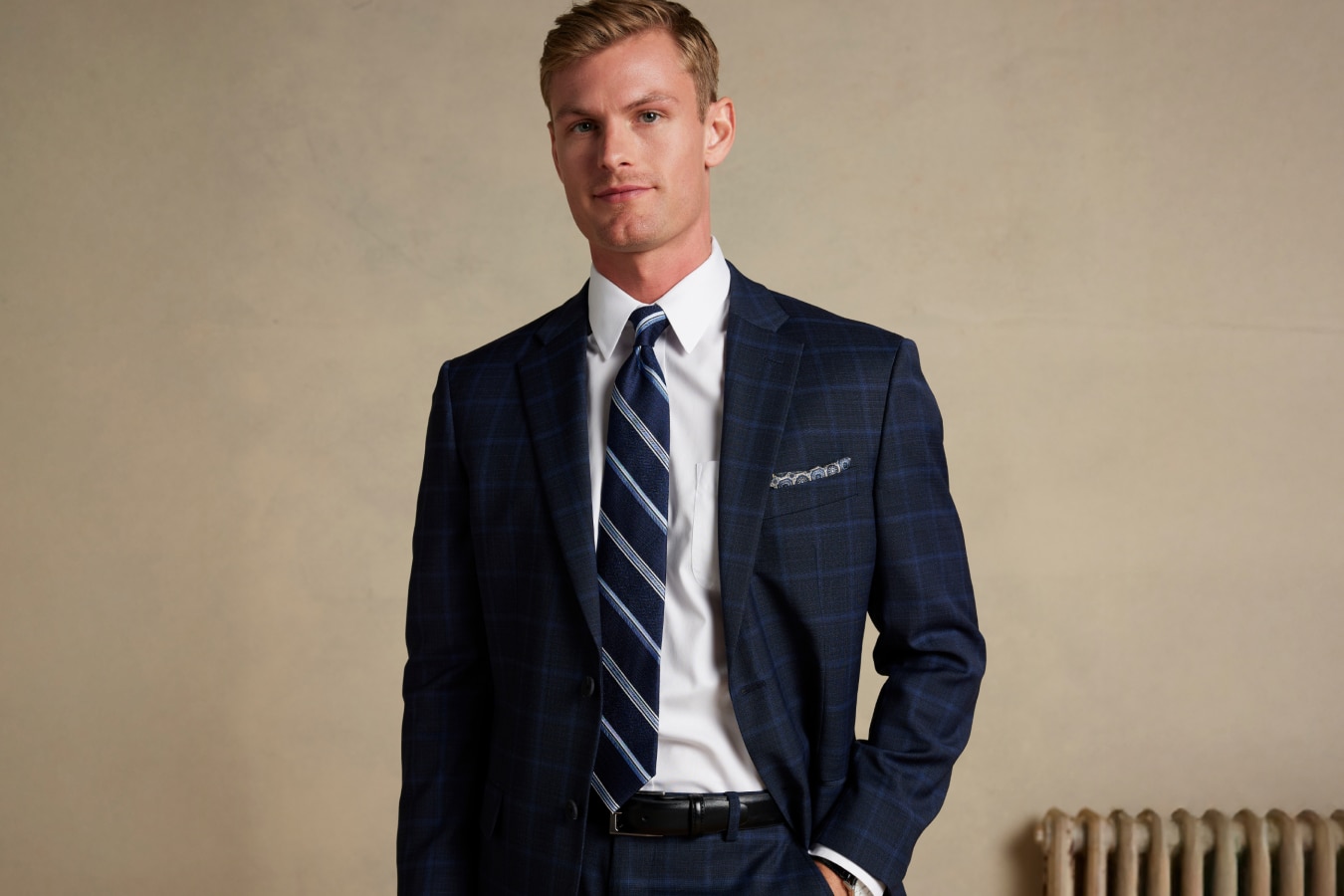 RENTAL PACKAGE STARTING AT $99: Price is inclusive of Bank Account Rewards® discount applied to select rental packages. Egara Dinner Jackets excluded from offer. Available to Bank Account Rewards® members only. Packages must include coat, pants, shirt, tie, and shoes to qualify for discount. Valid on new bookings only. Valid in store and online. Cannot be combined with other discounts or offers.