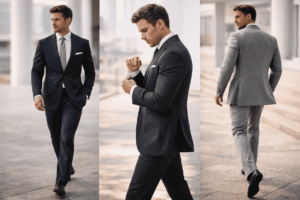 A suit’s silhouette is the outline the garment presents when worn by an individual. Our new Slim Fit selections create the most form fitting silhouette of the three options. These suits feature slimmer lapels, a higher 2-Button styling and higher armholes to maximize freedom of movement. The trousers have a shorter rise and our narrowest cut in the legs. Our new selection of Slim Fit dress shirts and slightly narrower Heritage ties completes the look.