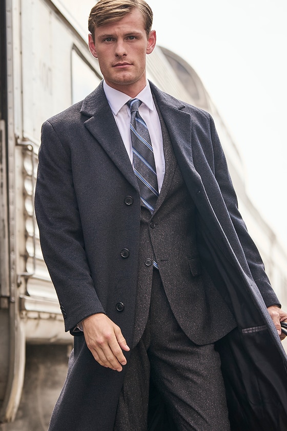 This yarn-dyed melange overcoat from Jos. A. Bank offers a timeless look with rich visual depth and texture. Tailored in a Traditional Fit, it provides a classic silhouette with room to layer comfortably over suits or knitwear. The wool-blend fabric delivers warmth and structure, while thoughtful tailoring details ensure a polished, enduring style for colder days.