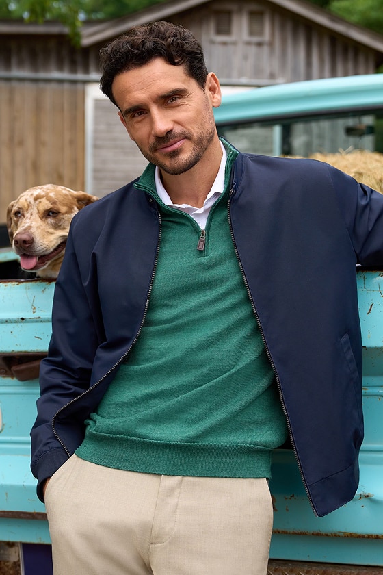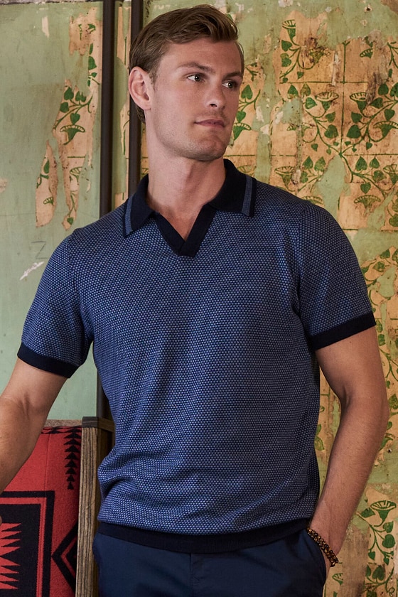 Crafted from an eco-friendly cotton blend, this honeycomb knit sweater offers texture, comfort, and a touch of modern polish. The Tailored Fit creates a clean silhouette, while contrasting ribbed trim at the neck, cuffs, and hem adds a refined finish. Lightweight and versatile, it layers effortlessly over shirts or under jackets. A thoughtful choice for everyday style with a sustainable edge.