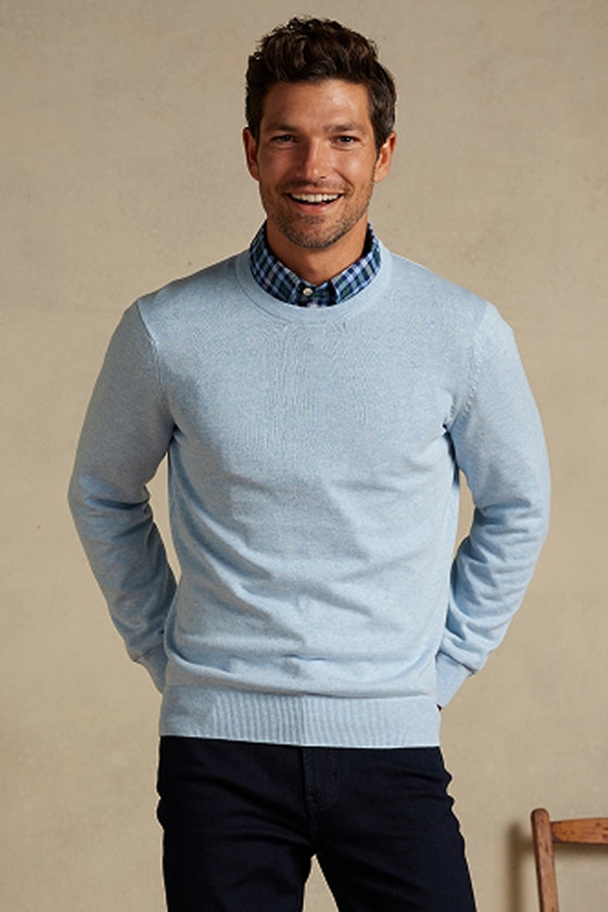 Soft, lightweight, and endlessly versatile, this heathered sweater is your go-to for refined layering. The premium Pima cotton offers a smooth, breathable feel with a subtle texture that elevates your look. Finished with a classic crew neckline, it pairs effortlessly with everything from tailored trousers to casual denim, making it a polished essential for any season.